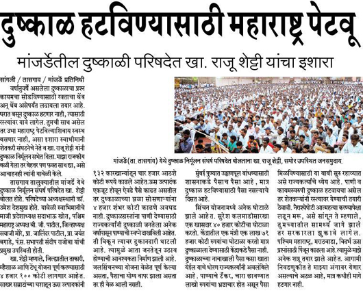 दुष्काळ हटविण्यासाठी महाराष्ट्र पेटवू « मांजर्डेत आज दुष्काळ निर्मुलन परिषदेचे आयोजन –‘स्वभिनानी’ च्या तोफा धडाडणार » दुष्काळग्रस्तांचे ७१ हजार कोटी राज्यकर्त्यांनी लाटले