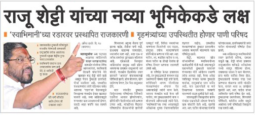 राजू शेट्टी यांच्या नव्या भूमिकेकडे लक्ष्य « आता रडून नाही लढून पाणी मिळवा » पैसा आणि ताकदीवर निवडणुक जिंकता येत नाही : खा . शेट्टी