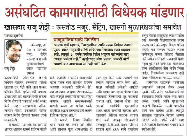 Asanghatit kamgaransathi vidheyak mandnar « Swabhimani shetkari sanghtanecha shankhadhwani morcha » Paryathanala Moathi Sandhi – Raju Shetti Ji