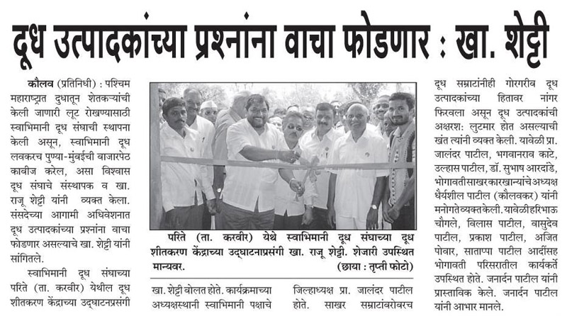 Bhogavati dudh plant opening « Jaysingpurat swain flu lasikaran » Sheti ani sakhar karkhanyanchya prashnanbabat pantpradhanana bhetnar