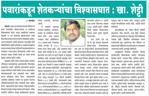 Pawaran Kadun Shethkaryancha Vishwasghat - MP Raju Shetti « Sanstha Chalavta Yet Nahi Mhanaryana Swabhimani chi Chaprak » Pawarani Sakhar Karkhanyacha Fayda Kela