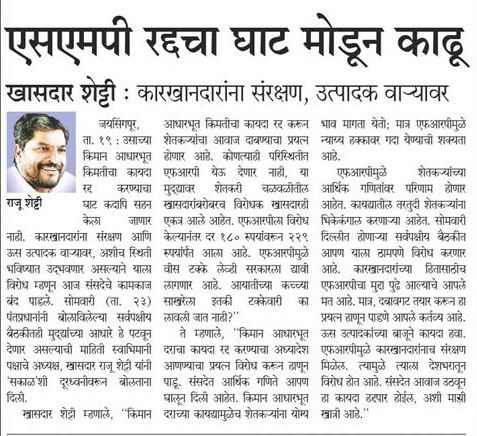 SMP raddacha Ghat Modun Kadhu « Us Darawaril Aadyadeshachya Virodhamule Delhi Ani Loksabha Thappa » Us Dar Prashni Shetkaryanchi Delhit Dhadak