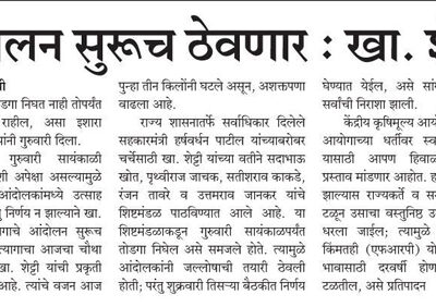 प्रमाणिक आन्दोलनामुलेच शेत्कर्यना २०५० दर