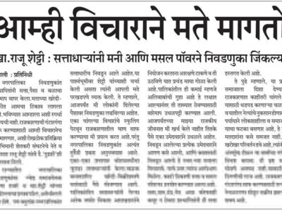 पैसा आणि ताकदीवर निवडणुक जिंकता येत नाही : खा . शेट्टी
