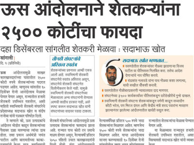 ऊस आंदोलनाने शेतकर्यांना २५०० कोटींचा फायदा
