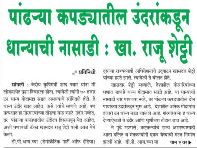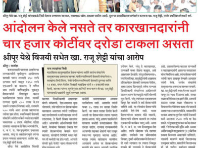 Aadharbhut Kimmat NDenaryawar Karvai Kara. MP Raju Shetti