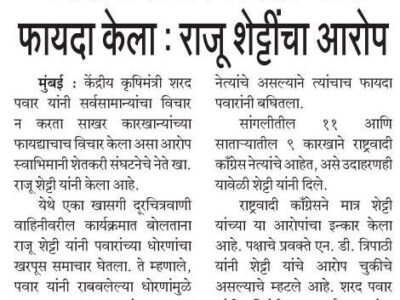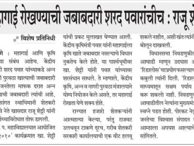 Mahagai rokhnaychi jababdari Sharad Pawarnchich: Raju Shetti