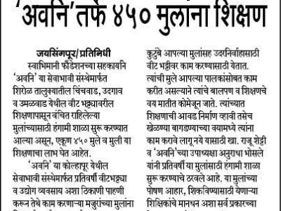 स्वाभिमानी फौंडेशन 'अवनी' तर्फे ४५० मुलांना शिक्षण