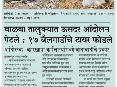 वाळवा तालुक्यात ऊस दर आंदोलन पेटले : १७ बैलगाड्यांचे टायर फोडले