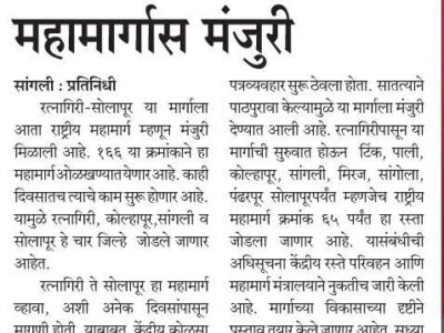 रत्नागिरी - सोलापूर राष्ट्रीय महामार्गास मंजुरी